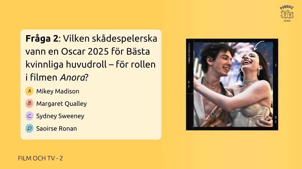 - Omgång 2: Film och TV: 10 frågor om populära filmer eller TV-serier.