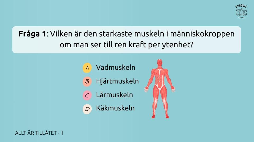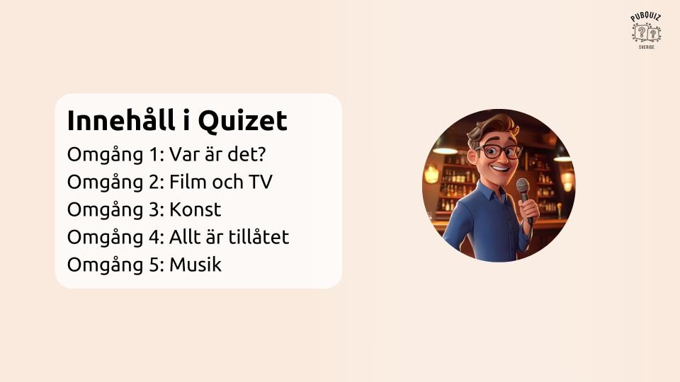 De rätta svaren finns i bildspelet efter varje omgång, så du bestämmer själv om du vill ha en quizmaster eller om alla ska delta i quizet. Vill du bli en grym quizmaster? Kolla in våra tips för att presentera ett pubquiz!